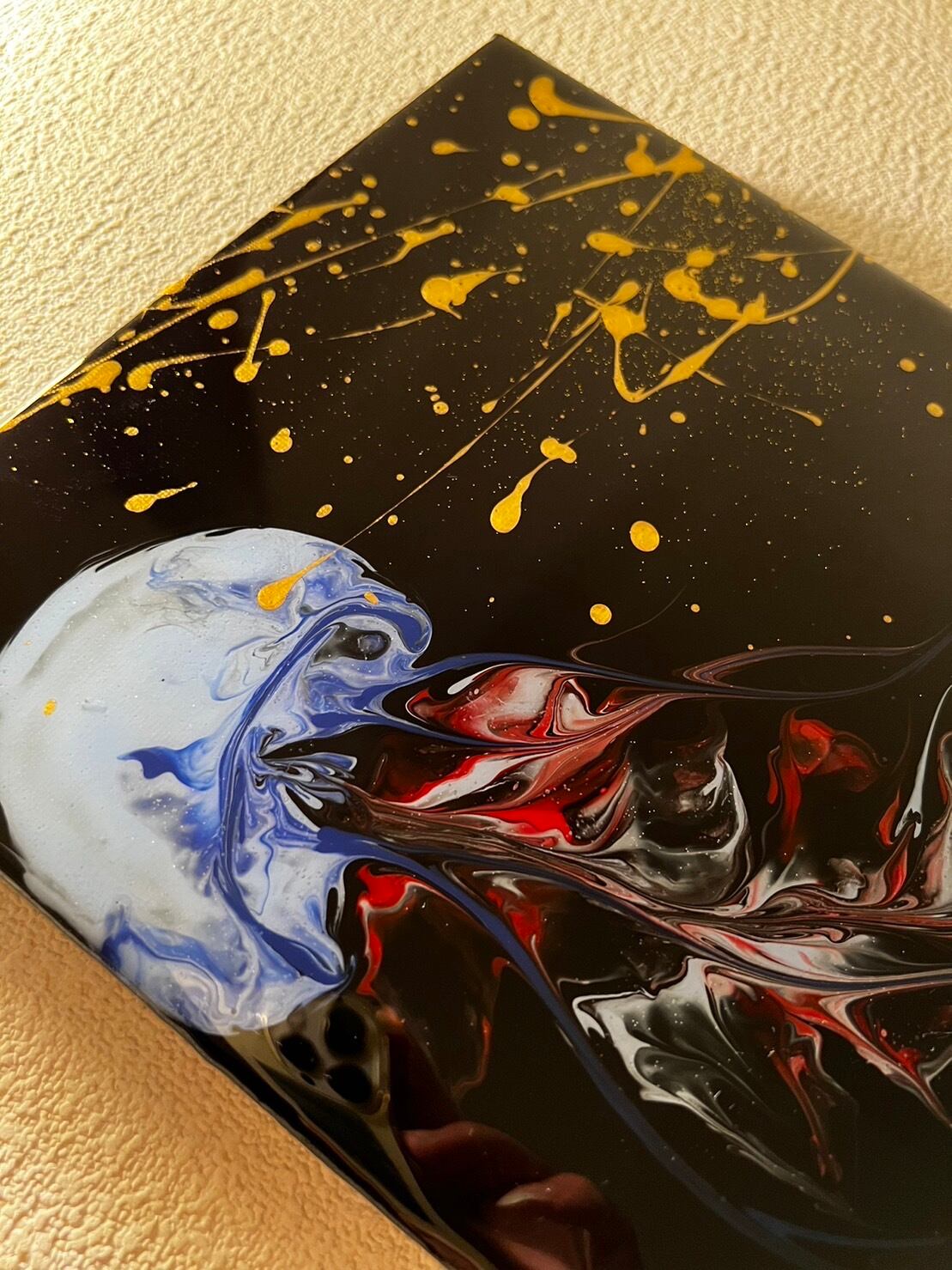 アクリル絵の具とポーリングメディウムを使用したポーリングアートの原画です。(自作・一点もの)